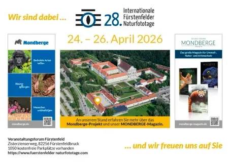 Daneben präsentieren u.a. Naturreiseanbieter und Verlage Ihre Dienstleistungen und Publikationen. Auch wir sind mit unserem Partner Mondberge mit einem eigenen Stand vertreten und informieren unsere Besucher über das Mondberge Naturschutz- und Sozialprojekt und stellen erstmals die neue, druckfrische Ausgabe des MONDBERGE-Magazins vor.
