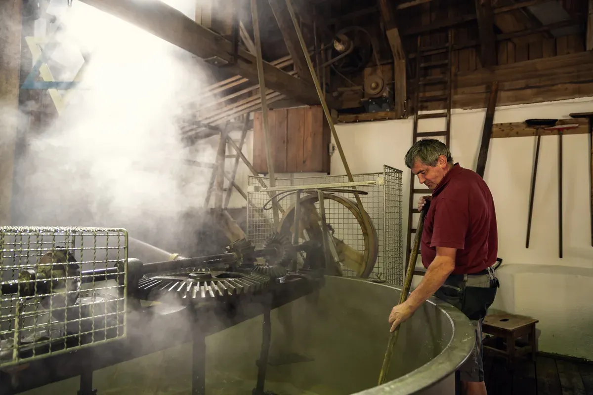 Sie tragen ihr „Brauzeug“, bestehend aus Gerste, Hopfen und dem Brennholz zum „Darren“, also dem Trocknen des gekeimten Getreides, zusammen. In der Sudpfanne über dem Holzfeuer wird die Maische – ein Gemisch aus Wasser und Gerstenmalz – zunächst gekocht, dann gehopft und schließlich als „Würze“ noch einmal erhitzt. Dieser Sud wird danach in einen großen offenen Behälter, dem „Kühlschiff“, gefüllt, wo er über Nacht abkühlt. Anschließend kommt er zum Zoigl-Wirt nach Hause, wo er im Bottich mit Hefe vergoren wird. Nach ca. zehn Tagen Gärung reift das Bier gekühlt bis zu zwölf Wochen in Fässern oder Tanks. Bei der nach dieser althergebrachten Weise gebrauten regionalen Spezialität handelt es sich um ein untergäriges, unfiltriertes und somit „natürliches“ Bier mit normalem Alkoholgehalt. „Natürlich“ auch deshalb, da es nicht künstlich haltbar gemacht wird.