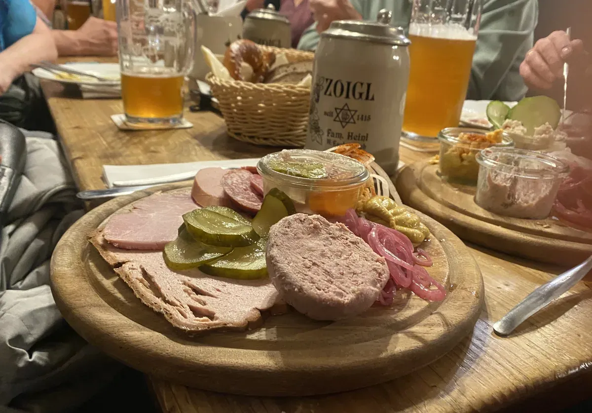Zum Zoigl bieten die Wirte ihren Gästen Brotzeiten an, die nicht selten sogar aus eigener Herstellung stammen. In den Genuss eines solchen Geschmackerlebnisses kam ich selbst im Rahmen meines Reportage-Trips in der wunderschönen Steinwald-Region. Dabei stand nämlich auch der Besuch einer Zoiglstubn auf dem Programm. Zu dieser Zeit wurde die Bierspezialität gerade in Falkenberg beim Betrieb Kramer Wolf angeboten. Weil der Wirt sogar noch eine eigene Metzgerei betreibt, war die Auswahl an deftigen Begleitspeisen zum Kommunbier entsprechend groß. Nicht-Vegetariern fällt die Entscheidung angesichts der Vielfalt angebotener Köstlichkeiten nicht leicht. Auf der Karte finden sich etwa Schlachtschüssel oder Kesselfleisch, ein üppiger Brotzeitteller, Geräuchertes, Sulz, Presssack, Leberkäs und Wurstsalat. Und wer sich als Vegetarier nicht gerade vegan ernährt, freut sich, dass auch ein „Obazda“ – ein Brotaufstrich aus Camembert, der mit Butter und Frischkäse vermengt wird - zur Auswahl steht.