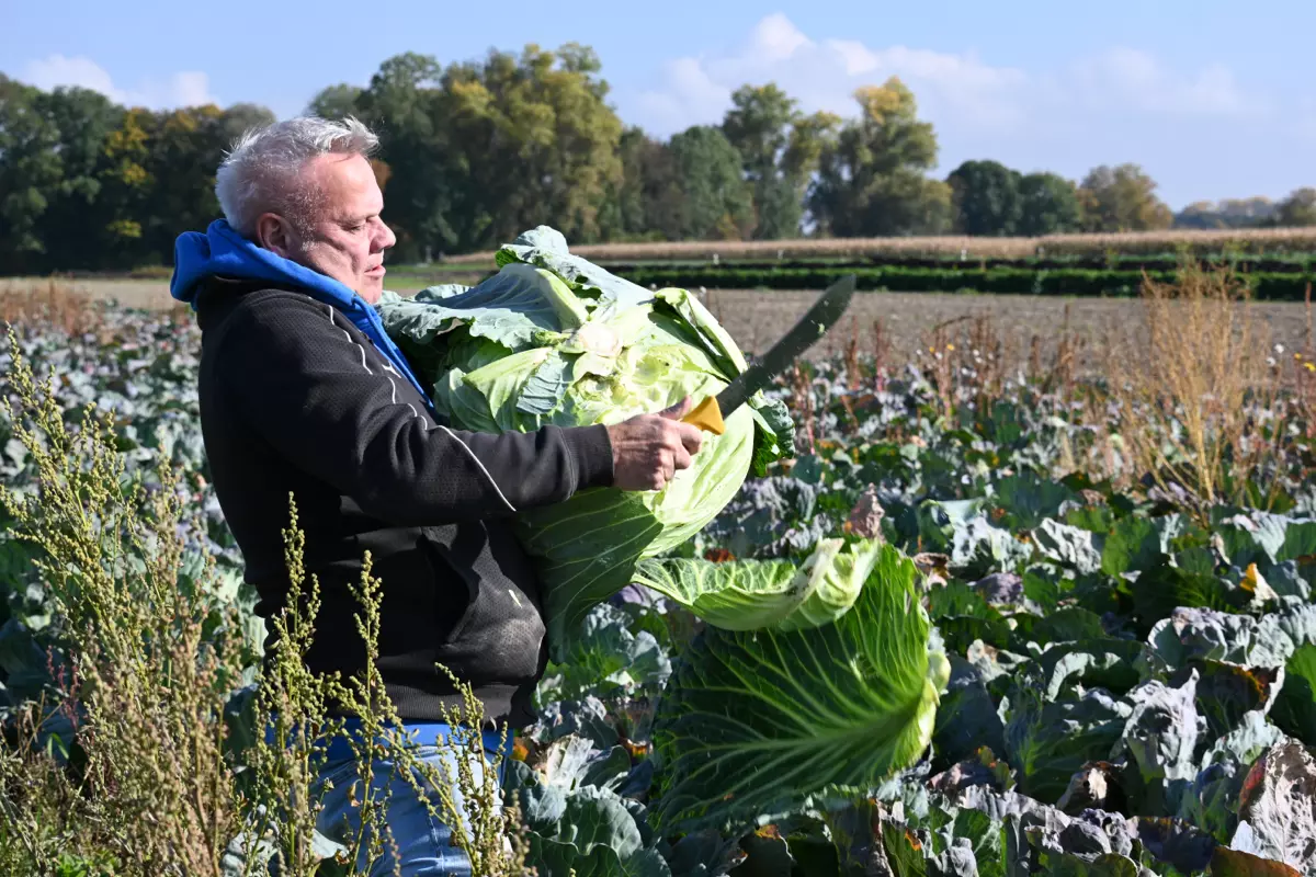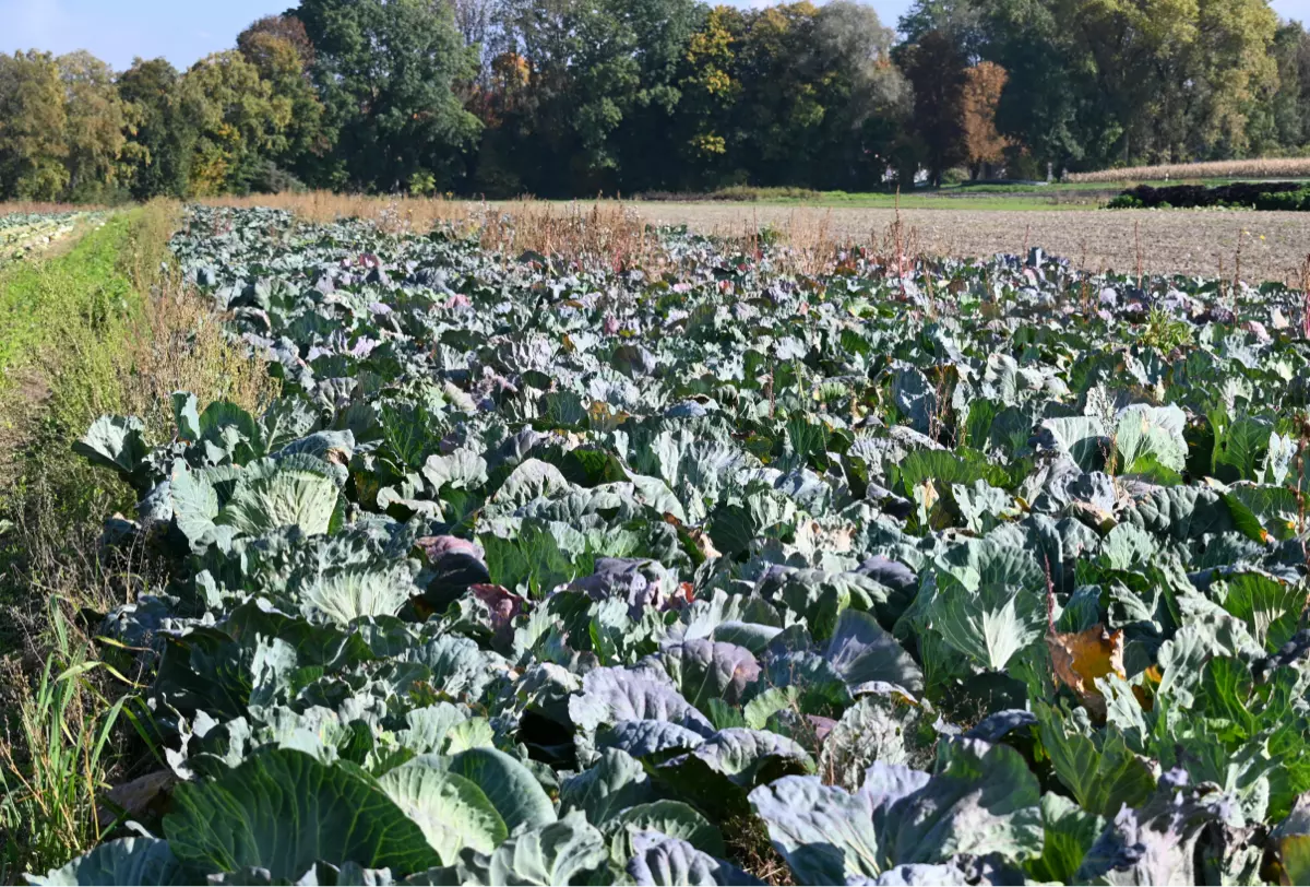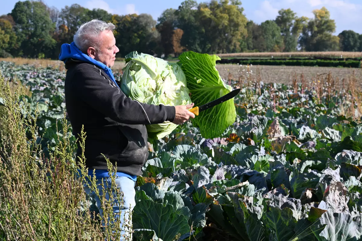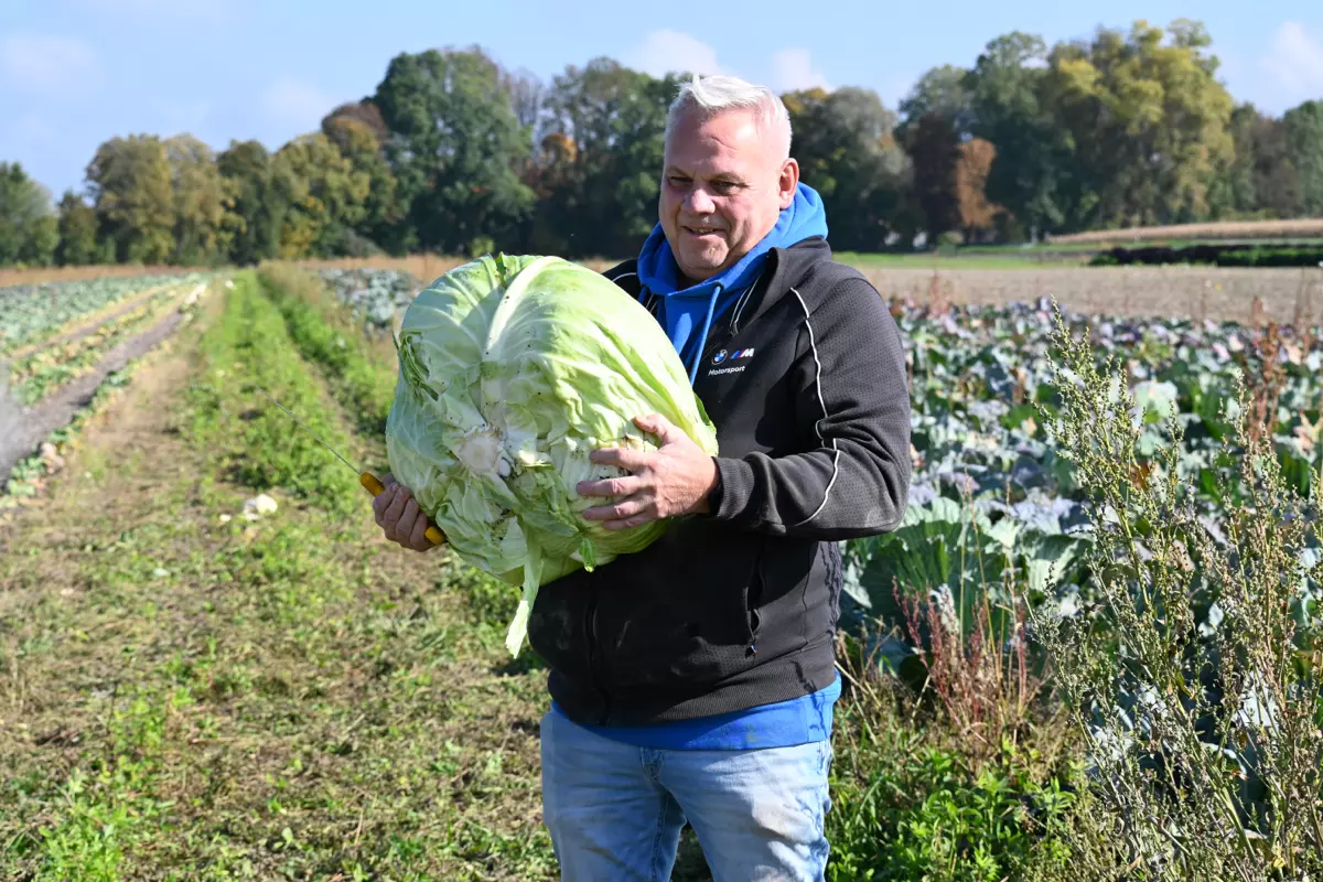 Max Kraus jr., Landwirt und zweiter Bürgermeister der Gemeinde, lud uns freundlicherweise Mitte Oktober zu einen Besuch ein, damit wir uns vor Ort selbst ein Bild von den Anbaubedingungen auf den Krautäckern machen konnten. Dabei erfuhren wir, dass anders als zu früheren Zeiten heute die Krautköpfe direkt bei der Ernte auf den Feldern „geputzt“, also von den äußeren Blättern befreit werden und nicht erst auf dem Hof.